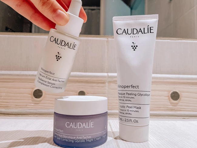 Στο θέμα μας τώρα: Πριν μερικές εβδομάδες "προσγειώθηκε" στο γραφείο μου η ανανεωμένη σειρά Vinoperfect της Caudalie, η οποία με νέα ακόμα πιο αποτελεσματική και καθαρή σύνθεση δρα κατά όλων των παραπάνω ειδών κηλίδων. Ανυπομονούσα πολύ να τη δοκιμάσω κι έτσι άλλαξα τη ρουτίνα μου την ίδια κιόλας μέρα.