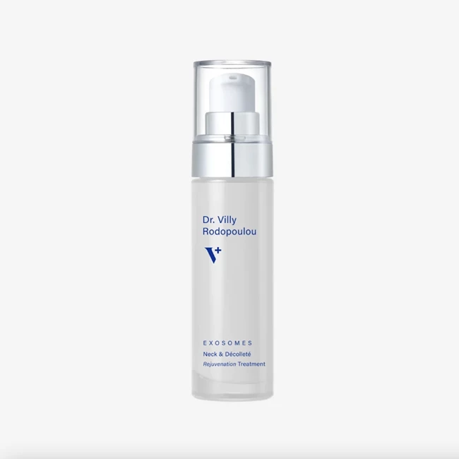 Το καινοτόμο και μοναδικό στο είδος του στην Ελλάδα, το Exosomes neck & décolleté cream, μια πρωτοποριακή θεραπεία ανανέωσης προσώπου, που χρησιμοποιεί την προηγμένη επιστήμη των εξωσωμάτων για την αναδόμηση και την ανανέωση του δέρματος. Σχεδιασμένη και για την περιοχή του λαιμού και του ντεκολτέ, ταυτόχρονα κατάλληλη και για το πρόσωπο, είναι εμπλουτισμένη με υαλουρονικό οξύ, βιταμίνη C, και α-λινολενικό οξύ (Ω3), στοχεύοντας στην ενυδάτωση, την αντιγήρανση, τη σύσφιξη, την αντιφλεγμονώδη δράση, τη φωτεινότητα, και την αντιοξειδωτική προστασία, αφήνοντας την επιδερμίδα βελούδινη και ανανεωμένη. Ένα skincare θαύμα σε λευκή συσκευασία.