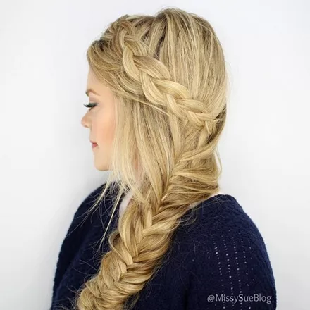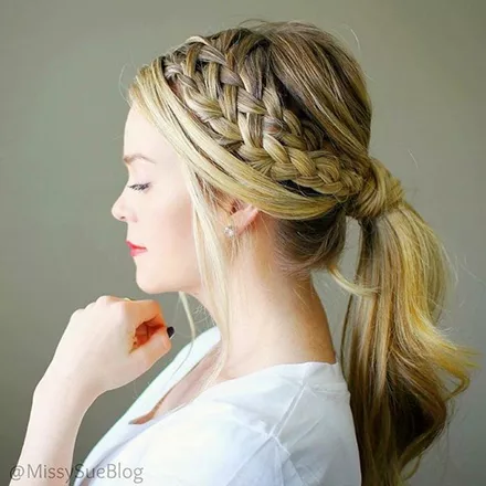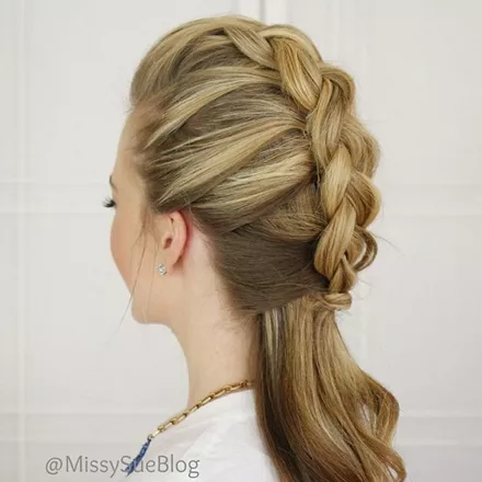 Συνδύασε την αλογοουρά με μια πλεξίδα, που ξεκινάει από μπροστά και καταλήγει πίσω, στολίζοντας το πλάι του κεφαλιού σου