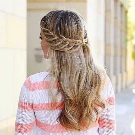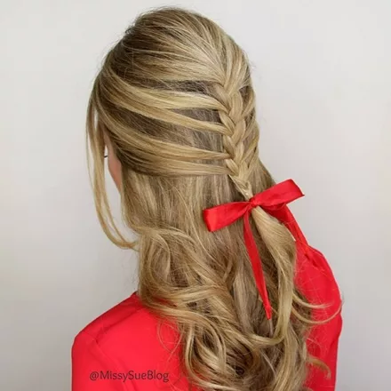 Φτιάξε μια αραιή γαλλική πλεξίδα ενώ μην ξεχάσεις για το απόλυτο girlie look να προσθέσεις μια κορδέλα. Φρόντισε από πριν να έχεις δώσει ένα ελαφρύ σχήμα στις άκρες
