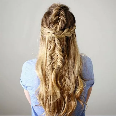 Πολλές πλεξίδες μαζί κάνουν το τέλειο αποτέλεσμα. Ξεκίνα από επάνω, μια στο πλάι, ένωσέ τες και έπειτα ολοκλήρωσε με άλλες δύο σκόρπιες. Εντυπωσιακό;