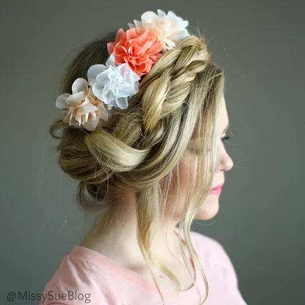 Κάνε το κλασικό και αγαπημένο χτένισμα με την πλεξίδα - στεφάνι και δώσε την εντυπωσιακή τελευταία πινελιά με λουλούδια και αξεσουάρ