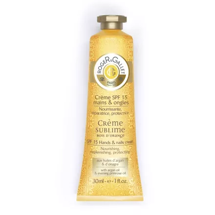 Η κρέμα χεριών και νυχιών Sublime θρέφει και επανορθώνει την επιδερμίδα, ενώ προσφέρει επιπλέον αντηλιακή προστασία με δείκτη SPF 15. Περιέχει Έλαιο Argan, Βούτυρο Καριτέ, Έλαιο Νυχτολούλουδου, Βιταμίνη Β5, Ωμέγα 6 και D-panthenol για 24ωρη ενυδάτωση