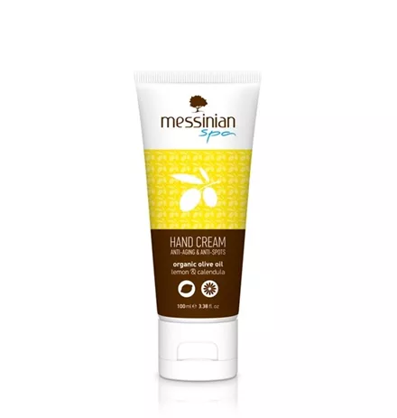 Kρέμα χεριών χεριών Messinian Spa με ΠΟΠ εξαιρετικό παρθένο ελαιόλαδο Καλαμάτας, λεμόνι και άλλα ευεργετικά συστατικά που προσφέρουν άμεση ενυδάτωση, απαλότητα, ενώ παράλληλα, θρέφουν, επιβραδύνουν τη γήρανση του δέρματος και καταπολεμούν σταδιακά τα σκούρα στίγματα. Ιδανική για σκασμένα χέρια και αγκώνες.