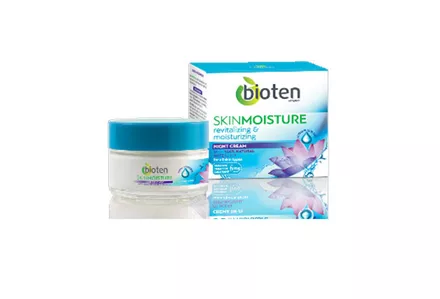 Η bioten Skin Moisture κρέμα νύχτας είναι η καλύτερη βραδινή επιλογή για ενυδάτωση κι αναζωογόνηση της επιδερμίδας. Όπως και η κρέμα ημέρας, η υφή της είναι πλούσια κι απαλή, ενώ προσφέρει στο δέρμα αποτελεσματική ενυδάτωση μακράς διά ρκειας. Η ελαστικότητα της επιδερμίδας ανακτάται από την πρώτη κιόλας ημέρα, είναι λαμπερή ξεκούραστη και φρέσκια – όπως, ακριβώς, και μετά από οκτώ ώρες καλού ύπνου!