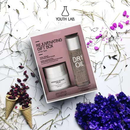 Και επειδή είτε πριν είτε μετά τις γιορτές μία ανάγκη για ολική αναδόμηση σίγουρα θα την έχεις (κι εσύ κι εγώ) τι καλύτερο από το Rejuvenating Gift Box της Youth Lab που περιέχει την Wrinkles Erasure Cream για επαναφορά της νεανικής λάμψης και ελαστικότητας του δέρματος, λείανση των λεπτών γραμμών και ρυτίδων και ενεργοποίηση των βιολογικών λειτουργιών των κυττάρων, επιταχύνοντας την κυτταρική ανανέωση και το Dry Oil για πρόσωπο, σώμα & μαλλιά που χαρίζει βαθιά ενυδάτωση και θρέψη της επιδερμίδας, λείανση των ρυτίδων και επαναφορά της ελαστικότητας, με αντιοξειδωτική δράση για προστασία από τις ελεύθερες ρίζες και την πρόωρη γήρανση.