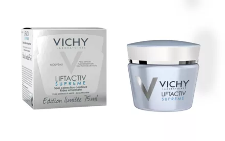 Τώρα, και για σύντομο χρονικό διάστημα3, η Νο.1 μάρκα στο φαρμακείο προσφέρει όλες τις κρέμες αντιγήρανσης σε συλλεκτική συσκευασία. Η Liftactiv Supreme 75ml της VICHY με το Σύμπλοκο Day-Proof, Ραμνόζη 5% και Νεοσπεριδίνη, προσφέρει αποτέλεσμα lifting, κάθε ώρα, κάθε μέρα, ενώ η ενισχυμένη αντιρυτιδική αποτελεσματικότητά της γίνεται εμφανής από τον πρώτο κιόλας μήνα, για ένα ολικό αποτέλεσμα lifting.