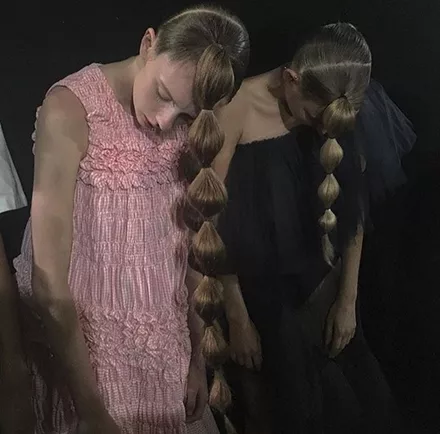 Συγκεκριμένα, το look των μοντέλων δεν είχε μια μόνο bubble ponytail αλλά δύο, ενώ η πρώτη έπεφτε μπροστά στο πρόσωπο, δίνοντας έτσι έναν girlie και ρομαντικό αέρα.