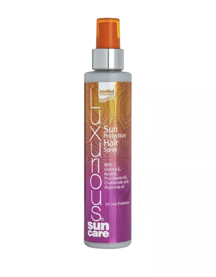Το Luxurious Sun Care Hair Protection Spray της InterMed είναι το τέλειο αντηλιακό spray για τα μαλλιά που προστατεύει τα μαλλιά από τον ήλιο, ενώ παράλληλα τα μαλακώνει και τα θρέφει.