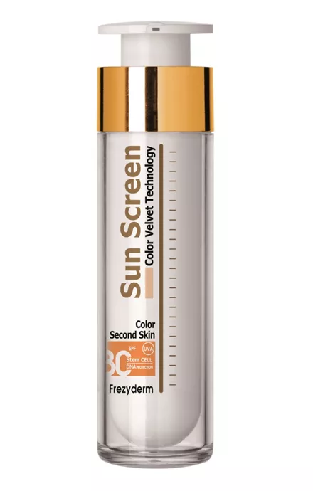 H τόσο λατρεμένη σειρά των Sun Screen Velvet της Frezyderm εμπλουτίζεται με το νέο αντηλιακό προσώπου Sun Screen Color Velvet SPF 30, που προσφέρει αόρατη προστασία και ομοιόμορφη κάλυψη. Εξασφαλίζει υψηλή προστασία και ομοιόμορφο χρωματικό τόνο, γιατί προσφέρει αποτελεσματική κάλυψη σε δυσχρωμίες, σημάδια και δερματικές ατέλειες, ενώ το χρώμα παραμένει σταθερό και αναλλοίωτο για πολλές ώρες. Ξέχασε τις γυαλάδες και τα λευκά ίχνη και νιώσε μια βελούδινη αίσθηση στην επιδερμίδα.