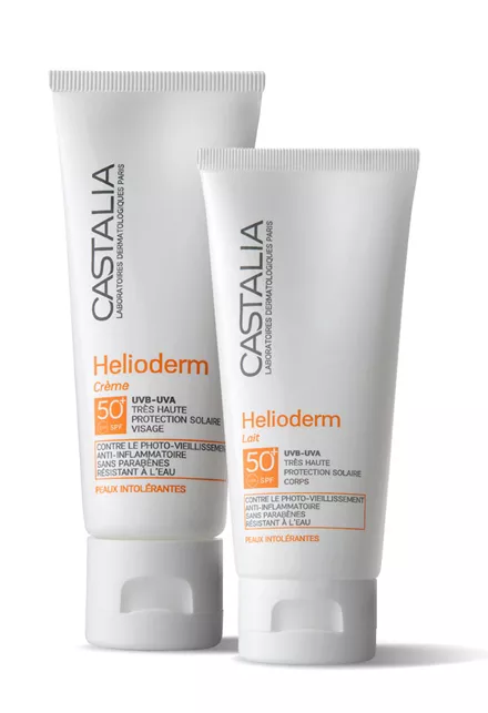 Τα εξειδικευμένα προϊόντα της αντηλιακής σειράς Helioderm της Castalia δρουν αποτελεσματικά, ακόμα και στις πιο απαιτητικές κι υπερευαίσθητες επιδερμίδες, τις πιο ανοιχτόχρωμες ή μη-ανεκτικές στον ήλιο και το άρωμα. H σειρά Helioderm προσφέρει ολοκληρωμένη άμυνα από τις επιβλαβείς υπεριώδεις ακτίνες UVA και UVB, ενώ παράλληλα προστατεύει την επιδερμίδα από τη φωτογήρανση. Τα προϊόντα της σειράς εμπεριέχουν επίσης Βιταμίνη E, γνωστή για την αντιοξειδωτική της ιδιότητα και προστασία ενάντια στις ελεύθερες ρίζες.