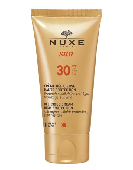 Η αντηλιακή σειρά της Nuxe παρέχει ιδανική προστασία και απόλυτη καλλυντική ευχαρίστηση με τις απολαυστικές και ονειρεμένες υφές της. Παράλληλα το ακαταμάχητο άρωμα θα συνοδεύει κάθε καλοκαιρινή στιγμή. Η Κρέμα προσώπου υψηλής προστασίας SPF30 είναι μια απολαυστική κρέμα προσώπου, υψηλής προστασίας SPF30 ενάντια στη φωτογήρανση, η οποία ενδείκνυται για όλους τους τύπους επιδερμίδας, ακόμα και για τις ανοιχτόχρωμες.