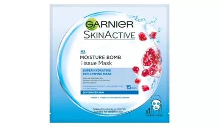 Garnier, Moisture Bomb Tissue Mask: Με φυσικά ενεργά συστατικά, υαλουρονικό οξύ και ενυδατικό serum, η μάσκα ενυδατώνει την αφυδατωμένη επιδερμίδα προσφέροντας στις επιφανειακές στοιβάδες 24 ώρες διαρκούς ενυδάτωσης. Η μάσκα επίσης ενδυναμώνει τη φυσική προστασία του δέρματος, θωρακίζοντάς το ενάντια στους εξωτερικούς παράγοντες. Έτσι η επιδερμίδα γίνεται ξανά σφριγηλή, λαμπερή και ακτινοβολεί υγεία και φρεσκάδα.