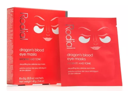 Rodial, Dragon's Blood Eye Masks: Αυτές οι πρωτοποριακές μάσκες ματιών συνδυάζουν την τεχνολογία της βίο-κυτταρίνης με το μοναδικό σύμπλεγμα του εκχυλίσματος του δέντρου Dragon's Blood για μία εντατική φροντίδα ενυδάτωσης της περιοχής των ματιών.Το εκχύλισμα Dragon's Blood λειτουργεί σαν "δεύτερο δέρμα" ενώ ταυτόχρονα καλμάρει την επιδερμίδα και ανανεώνει τα κύτταρά της. Το Υαλουρονικό Οξύ τονώνει και ενυδατώνει άμεσα, βοηθώντας την ευαίσθητη περιοχή των ματιών να δείξει ξεκούραστη, σφικτή και σαφώς νεότερη! Τέλος, η Arnica βοηθά στη μείωση των πρηξιμάτων και των μαύρων κύκλων, φωτίζοντας αμέσως το βλέμμα.