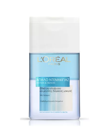 Η σκουρόχρωμη φάση πλούσια σε απαλά έλαια, αφαιρεί αποτελεσματικά το αδιάβροχο και μακράς διάρκειας μακιγιάζ. Η ανοιχτόχρωμη φάση αποτελείται απο μια απαλή λοσιόν που χαρίζει ευχάριστη αίσθηση φρεσκάδας.. Αφαιρεί το αδιάβροχο μακιγιάζ ενώ αφήνει αίσθηση φρεσκάδας.