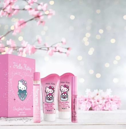 Η συλλογή Hello Kitty Dazzling Princess – Avon είναι το καλύτερο δώρο για μια λαμπερή πριγκίπισσα, ένα σετ που περιλαμβάνει lip gloss (70ml), άρωμα σε σπρέυ (15 ml), ζελέ μαλλιών με glitter μαλλιών (50ml) και κρέμα χεριών (50ml)