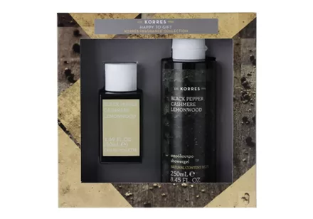 BLACK PEPPER/ CASHMERE/ LEMONWOOD από την Korres, ένα σετ ιδανικό για κάθε άντρα. Στο ξυλώδες αφρόλουτρο συνυπάρχουν η αναζωογονητική οξύτητα του Λεμονιού, ο ιδιαίτερος χαρακτήρας του Μαύρου Πιπεριού, η ζεστή πολυτέλεια του Cashmere με τις νότες Guaiacwood και Cedarwood. Αυτό συνοδεύεται από το αντίστοιχο Eau De Toilette άρωμα