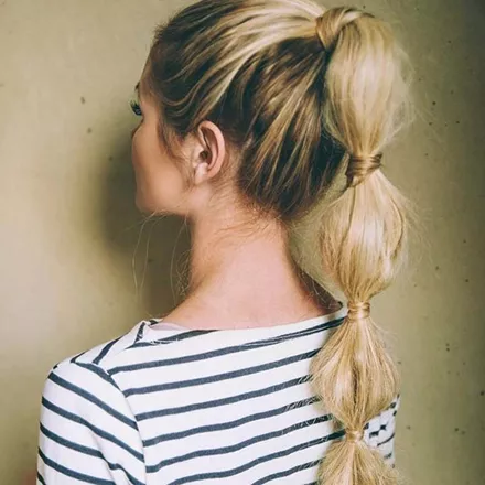 Μια εναλλακτική της αλογοουράς, όταν τα μαλλιά σου είναι καταπονημένα ή και άλουστα είναι η bubble ponytail