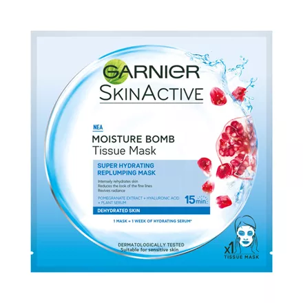 Η Moisture Bomb Tissue Mask για αφυδατωμένες επιδερμίδες είναι εμπλουτισμένη με εκχύλισμα ροδιού, το πιο ισχυρό φυσικό αντιοξειδωτικό με σκοπό να αναζωογονήσουν, να ενυδατώσουν και να προσφέρουν λάμψη στην επιδερμίδα μειώνοντας παράλληλα την επιδερμίδα. Εφάρμοσέ την για 15 λεπτά και έπειτα νιώσε την διαφορά (1.51 ευρώ)