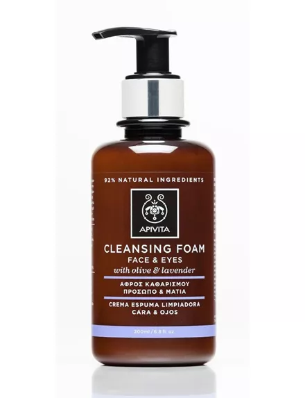Πρακτικός κρεμώδης αφρός καθαρισμού για πρόσωπο & μάτια με ελιά & λεβάντα από την Apivita που καθαρίζει απαλά πρόσωπο και μάτια από ρύπους και μακιγιάζ χωρίς να ερεθίζει ή να αφυδατώνει την επιδερμίδα (13.60 ευρώ)