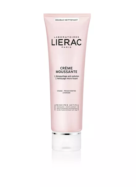 Η αφριστική κρέμα καθαρισμού Creme Moussante Double Nettoyante της Lierac είναι εμπνευσμένη από την αισθητική τεχνική του ιοντικού καθαρισμού, που προσφέρει διπλό καθαρισμό, στην επιφάνεια και στο βάθος απομακρύνοντας τους εξωτερικούς ρύπους και τις ακαθαρσίες και διαλύοντας το μακιγιάζ. Παράλληλα, αφαιρεί το πλεόνασμα του ιδρώτα και του σμήγματος και συμβάλλει στην εξάλειψη των νεκρών κυττάρων. Εφάρμοσε σε στεγνό δέρμα και ξέβγαλε.