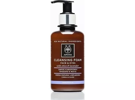 Ο Αφρός Καθαρισμού για Πρόσωπο & Μάτια με Ελιά & Λεβάντα από Apivita καθαρίζει απαλά πρόσωπο και μάτια από ρύπους και μακιγιάζ χωρίς να ερεθίζει ή να αφυδατώνει την επιδερμίδα ενώ παράλληλα προσφέρει ήπια αντισηπτική δράση και αντιοξειδωτική προστασία.Χρησιμοποιείται με νερό.