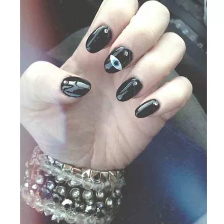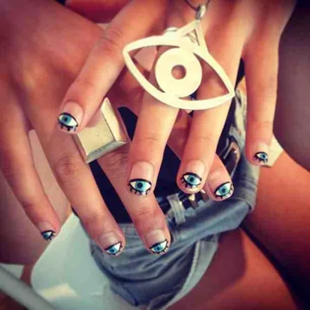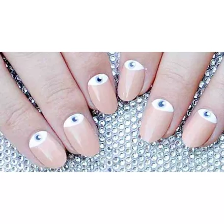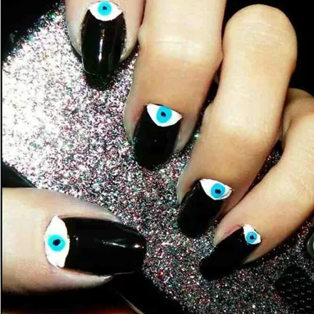 Για ένα πιο aggressive look βάψε τα νύχια σου μαύρα και στη μήτρα του νυχιού σχεδίασε τα μάτια με λευκό και γαλάζιο χρώμα.