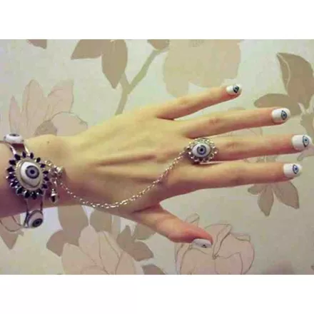The eye all over. Φυσικά και το ιδανικό φόντο για το εν λόγω σχέδιο είναι το λευκό. Αν θες να τονίζεις το αποτέλεσμα, επέλεξε αξεσουάρ με το χαρακτηριστικό μάτι.