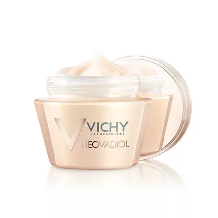 Η Vichy συνεχίζει να καινοτομεί με τη Neovadiol και προχωρά ένα βήμα παραπέρα όσον αφορά τη φροντίδα της επιδερμίδας στην εμμηνόπαυση, μελετώντας την επίδραση των ορμονών που σχετίζονται με τη νεότητα της επιδερμίδας.