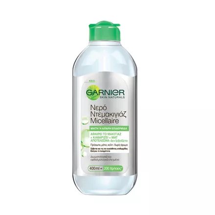 Το Micellar Cleansing Water της Garnier απευθύνεται και σητν μεικτή & ευαίσθητη επιδερμίδα για άμεση φρσκάδα, ματ αποτέλεσμα, μείωση της γυαλάδας αλλά και ρύθμιση του σμήγματος και τέλειο καθαρισμό
