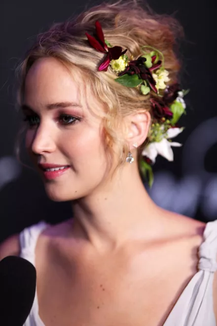 Συγκεκριμένα, η Jennifer Lawrence εμφανίστηκε στο κόκκινο χαλί του Radio City Music Hall της Νέας Υόρκης, με αφορμή την πρεμιέρα της ταινίας «Mother!», με φρέσκα λουλούδια στα μαλλιά, που στόλιζαν ένα ανεπιτήδευτο και χαλαρό updο χτένισμα.