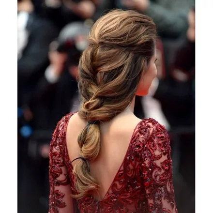Φτιάξε μια γαλλική πλεξίδα, προέκτεινέ την κατά μήκος του λαιμού και φέρε τα μαλλιά σου όλα στο πλάι. Μπορείς να το κάνεις και μόνη σου!