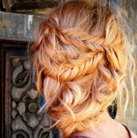 Φτιάξε μια πλεξίδα ψαροκόκκαλο και τοποθέτησέ την γύρω από το κεφάλι σου, σαν στεφάνι. Ολοκλήρωσε με ένα head piece! Voila