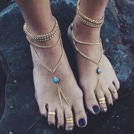 Μια εύκολη DIY ιδέα θέλει πολλές αλυσίδες γύρω από τον αστράγαλό σου, οι οποίες ενώνονται σε ένα δάχτυλο