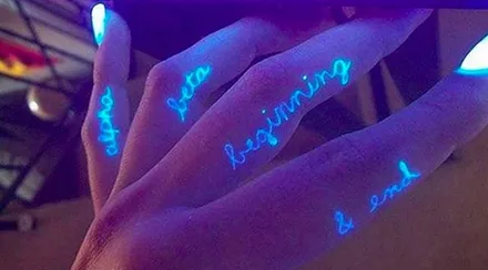 Δες επίσης: 30 ιδέες για μίνι τατουάζΤα black light tattoos είναι η νέα εναλλακτική που λειτουργεί ως εξής: Εσύ κάνεις ότι σχέδιο θέλεις σε όποια σημείο του σώματός σου επιθυμείς, όμως αυτό δεν είναι εμφανές από κανέναν. Πότε είσαι σε θέση να το δεις; Μόνο όταν αυτό εκτίθεται στο φως μιας UV λάμπας.