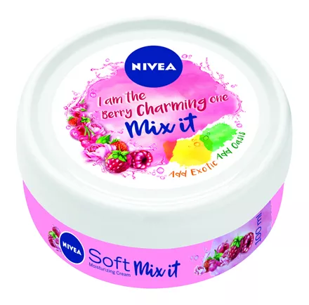 Berry Charming Αναδύει ρομαντισμό, γοητεία και μια παιχνιδιάρικη διάθεση: Με αυτό το νέο άρωμα η σειρά συνδυάζει την φρεσκάδα της NIVEA Soft με το γλυκό φρέσκο άρωμα από άγριες φράουλες και ζουμερά μούρα σε συνδυασμό με μια ιδιαίτερη πινελιά μήλου.
