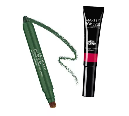 Κραγιόν Artist Acrylip #400 Iconique, Make Up For Ever και διπλό μολύβι με σκιά ματιών και πινέλο Easy Smoky Eye #06 και Gleaming Green - Nacré/Shimmer, Made in Sephora