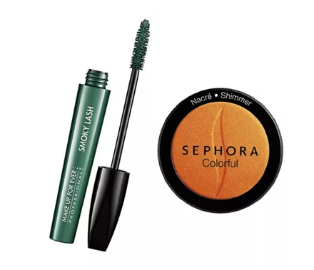 Mascara Smoky Lash #4 Green, Make Up For Ever και σκιά Colorful Ombre à paupières #N°224 Mango Shake, Made in Sephora