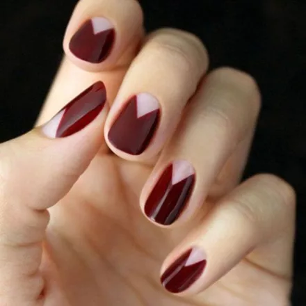 Με αυτό το σχέδιο συνδυάζεις την τάση του γαλλικού μανικιούρ, αυτή του half moon και τέλος του negative space manicure.