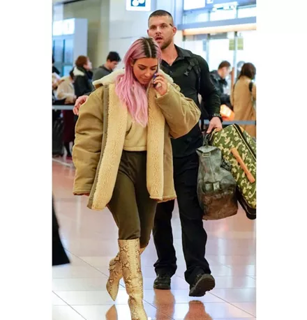 Με χρυσό ξανθό και πιο κοντά μαλλιά, χωρίς μαύρη ρίζα και δημιουργώντας έντονη αντίθεση με τα μαύρα της φρύδια.