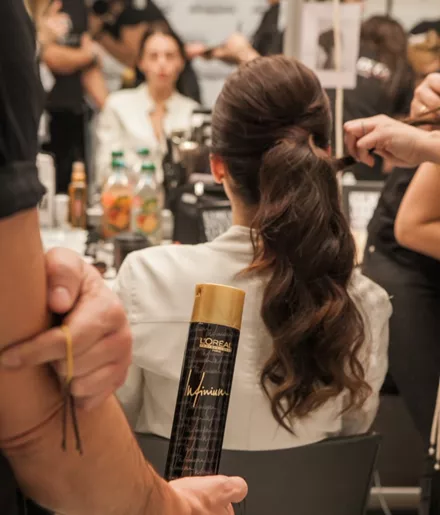 Τα εντυπωσιακά χτενίσματα, τα λεία ponytails, οι glamorous vagues, οι ατημέλητες μπούκλες, τα messy σινιόν πραγματοποιήθηκαν με τα επαγγελματικά προϊόντα styling της L’Oréal Professionnel, κορυφαίας εταιρίας επαγγελματικών προϊόντων, τα οποία προσφέρουν στα χέρια του κομμωτή εντυπωσιακά hair αποτελέσματα, με διάρκεια και λάμψη.