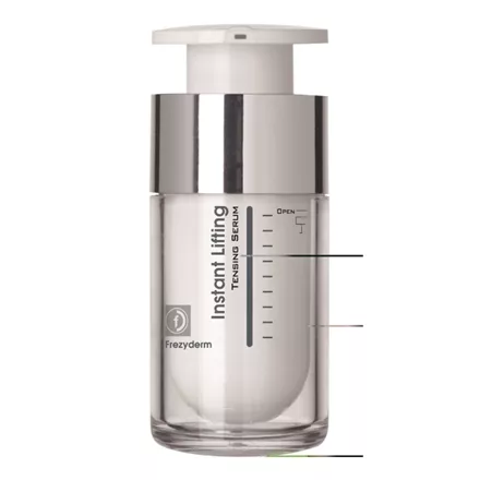 Η FREZYDERM με στόχο να δημιουργήσει προϊόντα που χαρίζουν νεανική όψη στις γυναίκες αξιοποίησε την τεχνογνωσία της και δημιούργησε μια ολοκληρωμένη σειρά αντιγήρανσης για το πρόσωπο και το σώμα. Το επαναστατικό Instant Lifting, ή αλλιώς ορός θαύμα, εφαρμόζεται σε καθαρό πρόσωπο με απαλές ευθείες κινήσεις των δακτύλων από το κέντρο προς τα έξω χωρίς μασάζ και τριβή. Στη συνέχεια, για 10 λεπτά απόφυγε τις έντονες κινήσεις (πχ. μάσηση, γέλιο). Το αποτέλεσμα; Μια αόρατη μάσκα που προσφέρει άμεσο lifting, απαλύνει οπτικά το βάθος των ρυτίδων, μειώνει τη χαλάρωση του δέρματος, επαναφέρει την ελαστικότητα και χαρίζει εξωτερική λάμψη και ομοιόμορφο τόνο στην επιδερμίδα.