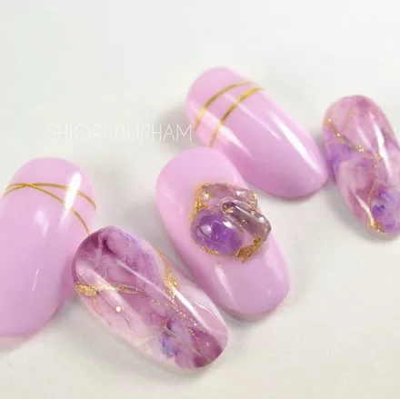 Συγκεκριμένα, η νέα τάση στα νύχια ακολουθεί τα χρώματα αλλά και τα ακαθόριστα σχήματα του αμέθυστου, του ορυκτού αυτού χαλαζία που χρησιμοποιείται κυρίως για διακοσμητικούς σκοπούς ως πολύτιμος λίθος.