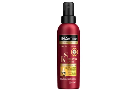Το TRESemmé Keratin Shine heat protect spray φέρνει στο προσκήνιο την καινοτομία που λειαίνει τα φριζαρισμένα μαλλιά, προσφέροντας τους 72 ώρες ελέγχου του φριζαρίσματος.  Παράλληλα ενισχύει τη λάμψη και προστατεύει τα μαλλιά από τις επιπτώσεις του styling και της θερμότητας.