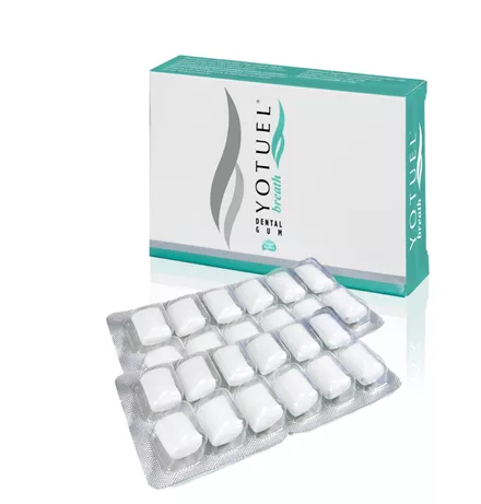 Φροντίζοντας για την καλή στοματική υγιεινή ανάμεσα στα γεύματα, η οδοντότσιχλα YOTUEL breath, με έξτρα παρθένο ελαιόλαδο, φθόριο και ξυλιτόλη καταπολεμά τα οξέα των τροφών που προκαλούν τερηδόνα. Παράλληλα, προσφέρει αίσθηση φρεσκάδας και δροσιάς χάρη στη γεύση μέντας!