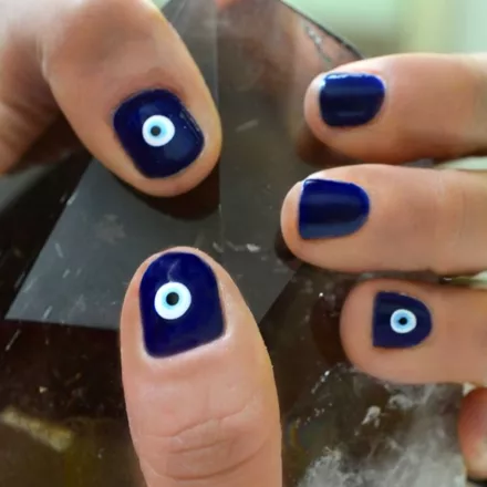 Το evil eye μπορεί να αναδειχθεί ακόμα και στα νύχια χωρίς χρώμα.