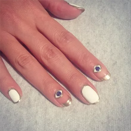Σχημάτισε το πιο απλό σχέδιο πάνω σε μπλε βερνίκι, εφαρμόζοντας λίγη ασημένια χρυσόσκονη για ένα σχέδιο που δε θα έχει τολμήσει καμία άλλη!