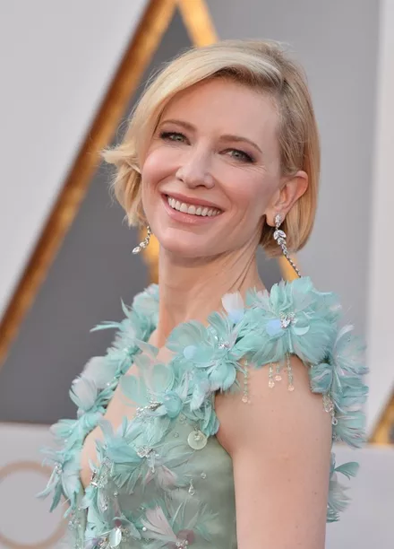 Μια ακόμα φορά άψογη, χωρίς υπερβολές και ένα μακιγιάζ που εστιάζει στην πορσελάνινη επιδερμίδα δίνοντας έμφαση στα μάτια. Συγκεκριμένα, η ηθοποιός, πρόσωπο του αρώματος Sì, εμπιστεύτηκε για το μακιγιάζ της τα προϊόντα Giorgio Armani. Η makeup artist Jeanine Lobell δημιούργησε για τη Cate Blanchett ένα ρομαντικό, αλλά ταυτόχρονα sexy, δαμασκηνί smoky look.