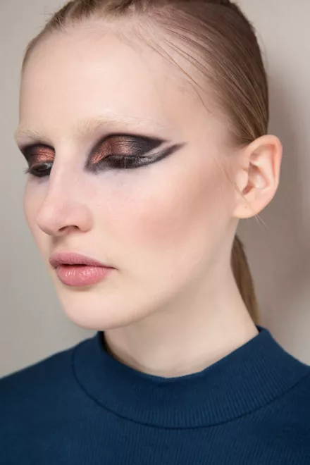 BalmainΤο πιο σύγχρονο smokey που έχουμε δει και το λατρεύουμε! Στην ουσία απλά αντιστρέφεις (και μεγαλώνεις) τις γωνίες, προσθέτοντας λίγο κόκκινο glitter.