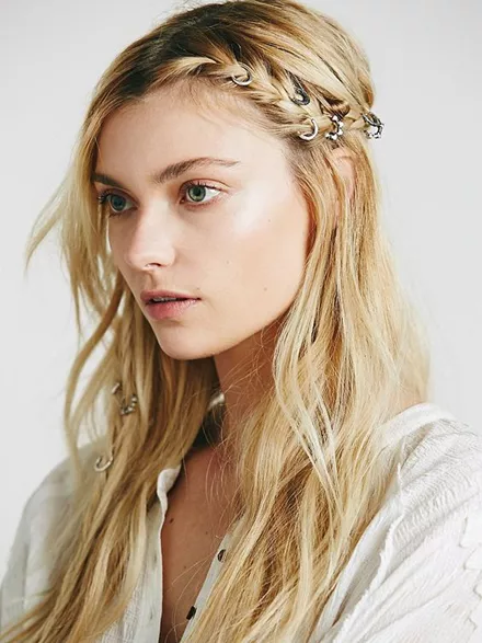 Μάζεψε όσους περισσότερους κρίκους μπορείς και πλέξε τους ανάμεσα στις πλεξίδες σου, δημιουργώντας το πιο ενημερωμένο hair look του καλοκαιριού.
